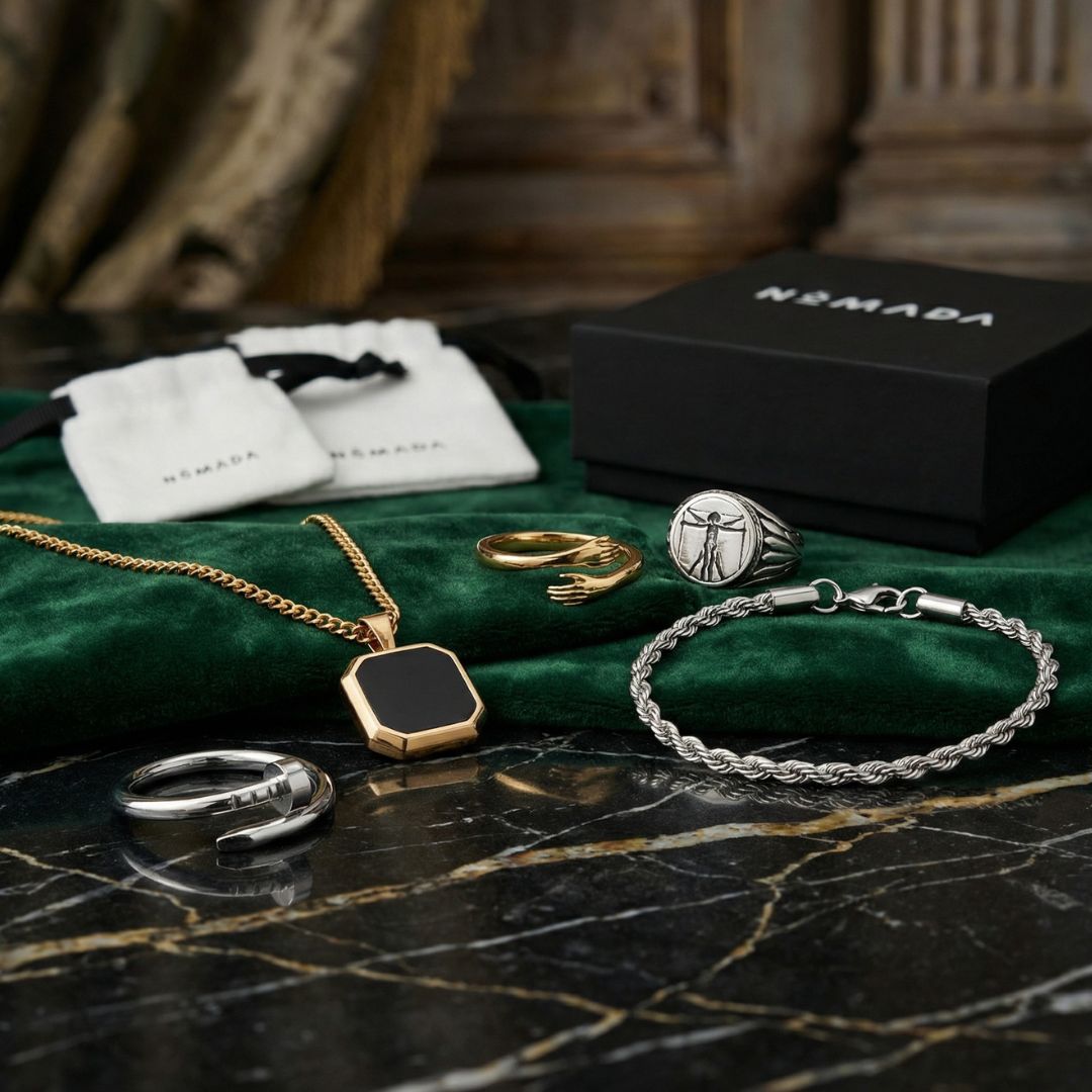En nuestra joyería, utilizamos acero inoxidable de alta calidad, y las piezas doradas están recubiertas con un baño de oro de 18 quilates para ofrecerte productos duraderos y de elegancia garantizada.
